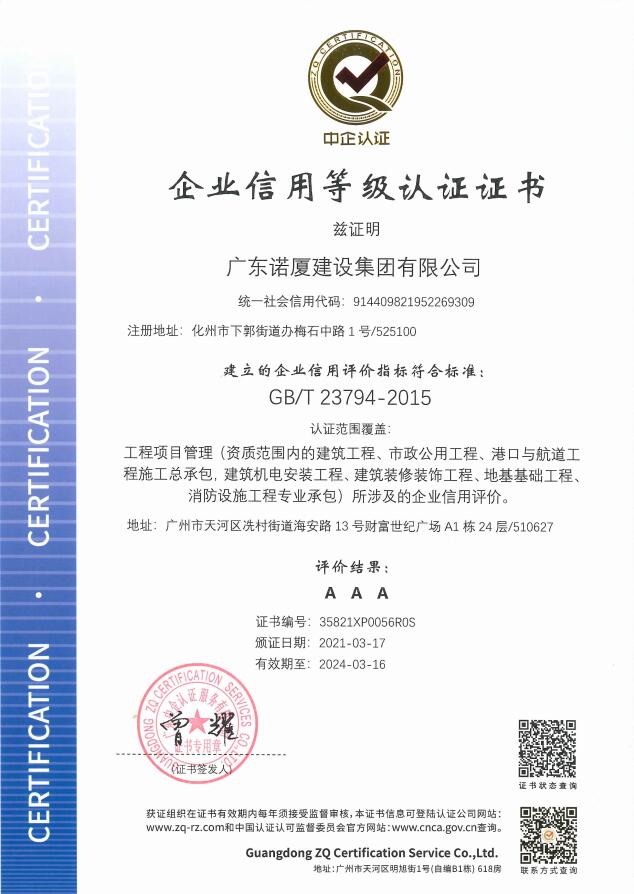 廣東諾廈建設(shè)集團(tuán)有限公司是諾廈集團(tuán)的核心企業(yè),具備國家房屋建筑工程施工總承包壹級、市政工程施工總承包壹級、港口與航道工程總承包、建筑裝修裝飾工程、消防設(shè)施工程、地基基礎(chǔ)工程、機(jī)電設(shè)備安裝工程、體育場地設(shè)施工程、建筑智能化工程、河湖整治工程、水利水電工程等資質(zhì)。......